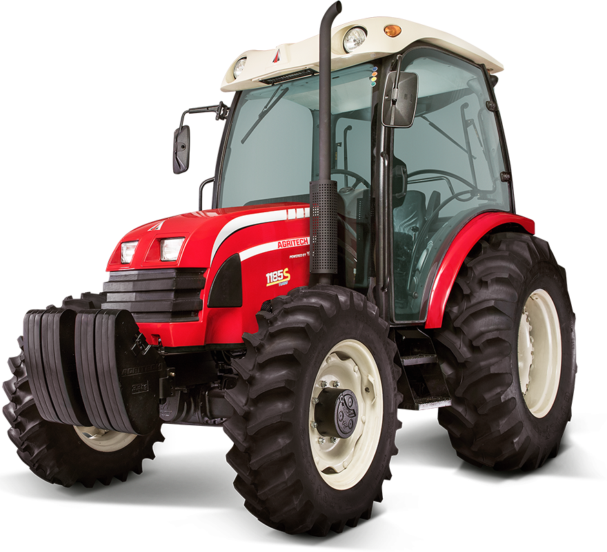 Trator Agritech modelo 1185 S Cabinado tração 4 x 4, motor Yanmar modelo 4TNV98T de 85,0 cv e 16 válvulas – TDF de 59 cv, câmbio Sincronizado de 12 velocidades a frente e 3 a ré, capacidade de levante do hidráulico de 3.200 kg.